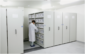 樣本儲存倉庫(工廠生產的每批飼料都會保留樣本,按照批號保留三年,以利隨時進行品質調查與分析。)
