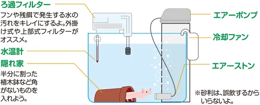 清洗過濾器的濾材時,使用飼養水或清水來輕輕沖洗。